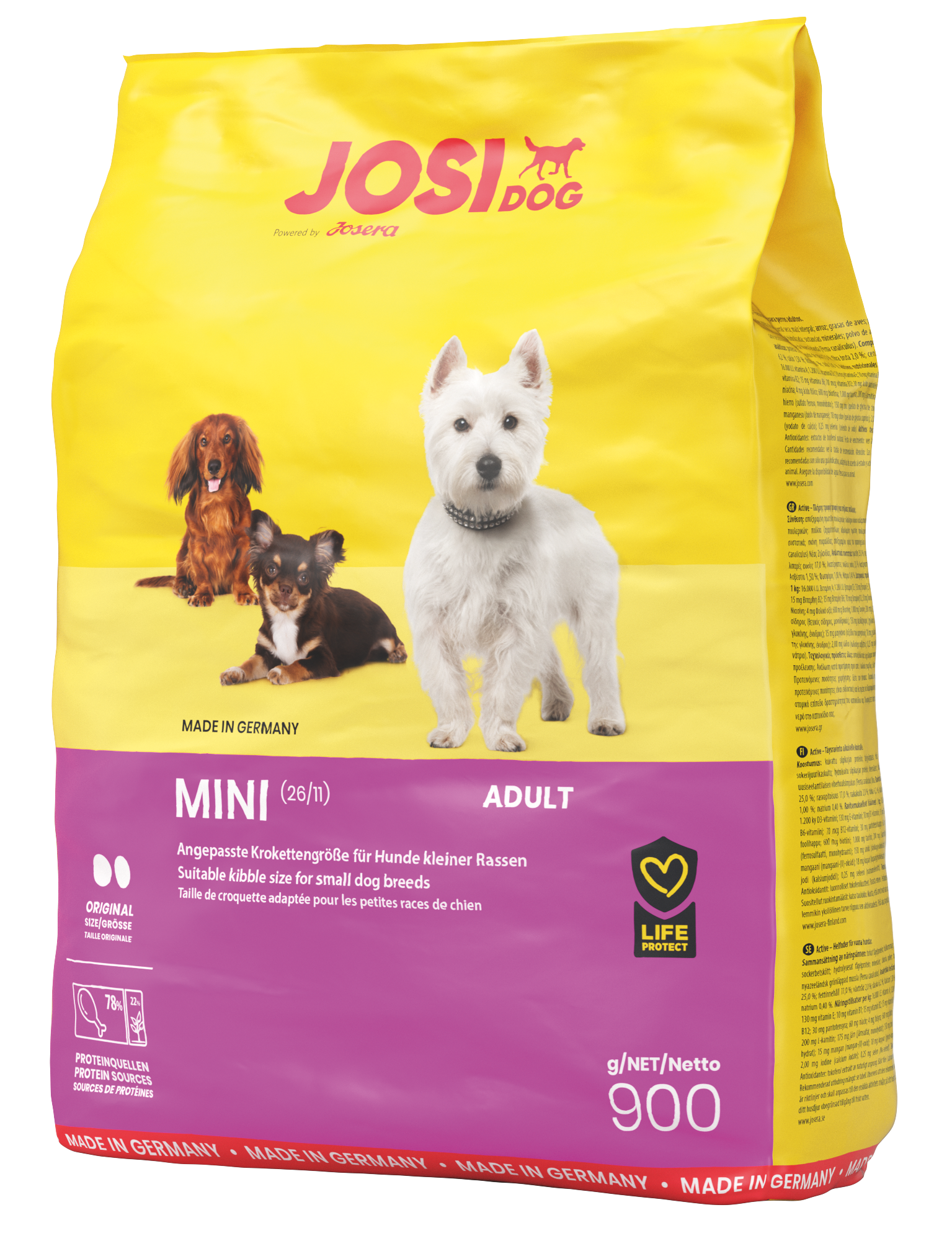 For the miniature ones! JosiDog Mini offers plenty of enjoyment for smaller breeds. Selected ingredients for healthy skin and a glossy coat. Small muzzles can easily cope with these very small kibble, and the gluten-free recipe gives them optimal nutrition.
